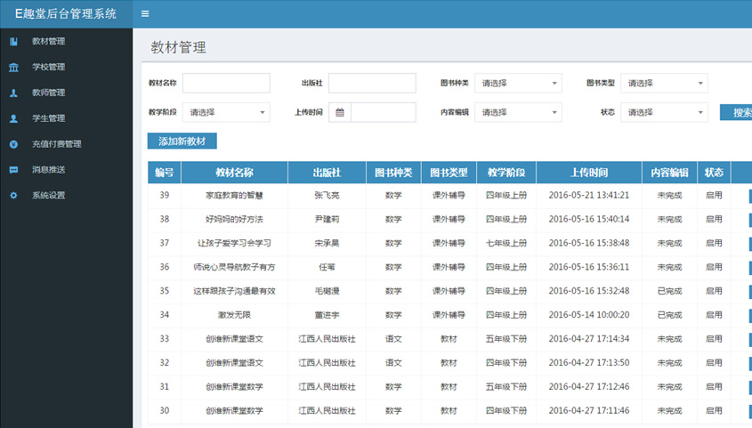 - 教材管理 管理平臺教材信息,采用圖片掃描、上傳、編輯對書本進(jìn)行錄入
